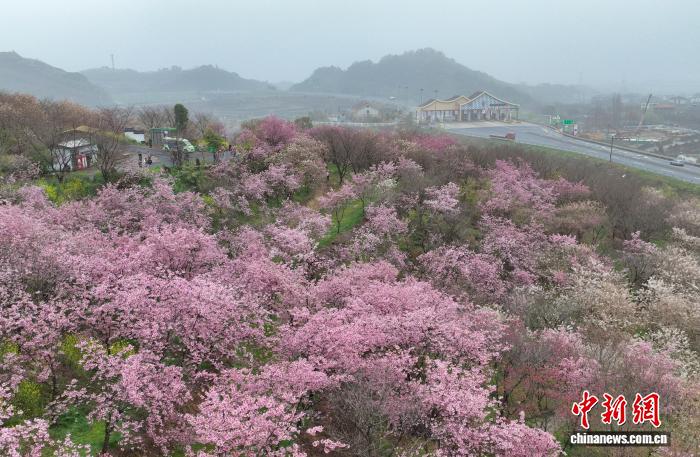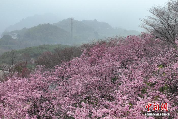 3月17日,瓶窑西免费站四周山头樱花衰搁。克日,正在浙江杭州绕乡下快西单线瓶窑西免费站四周,6万株樱花正在远600亩的山家间衰搁,没有少游人借帮接通容易战票务劣惠前去樱花圃挨卡赏秋。3月今后该樱花圃已欢迎旅客超4万人次,“秋日经济”慢慢降暖。(无人机像片)中新社记者 王刚刚 摄